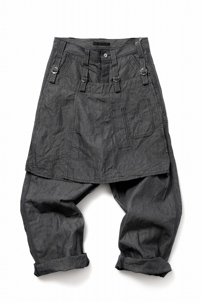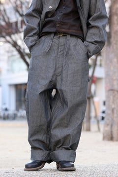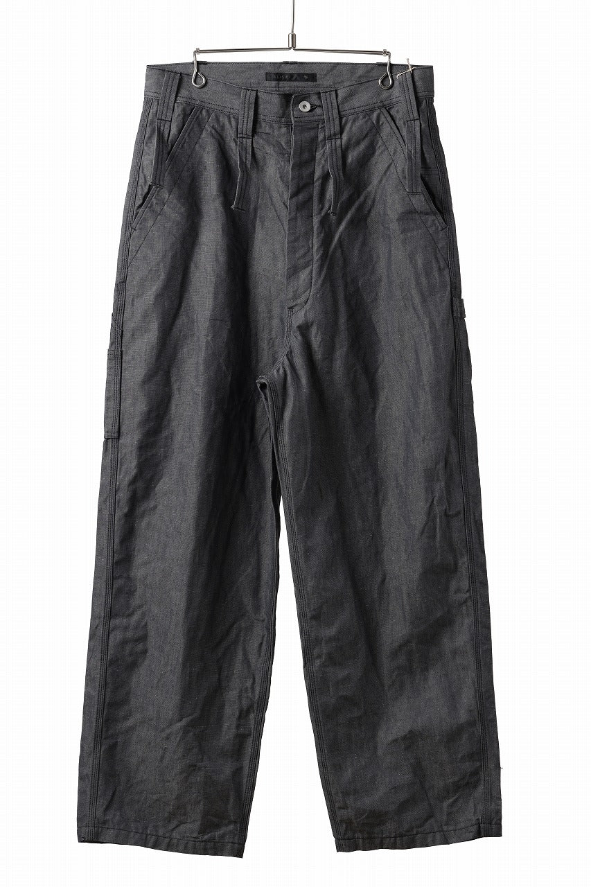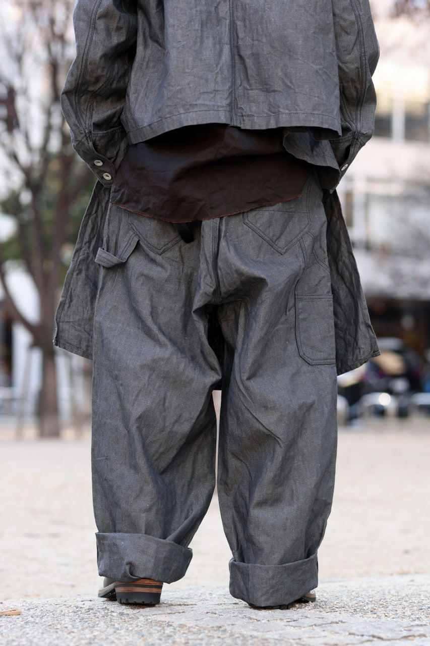KLASICA "ROCKWELL" LOW CLOTCH APRON WORKER PANTS / 9.7oz COTTON x LINEN CHAMBRAY (GRAY DENIM)