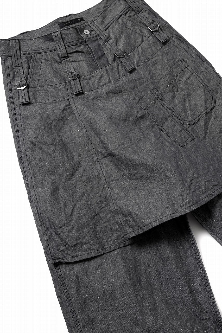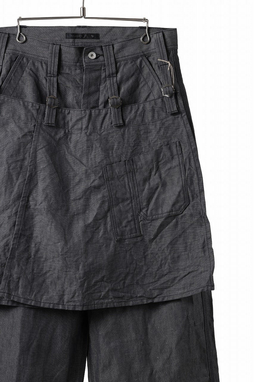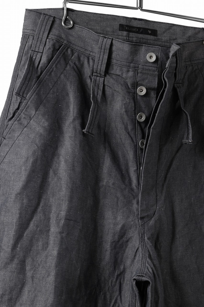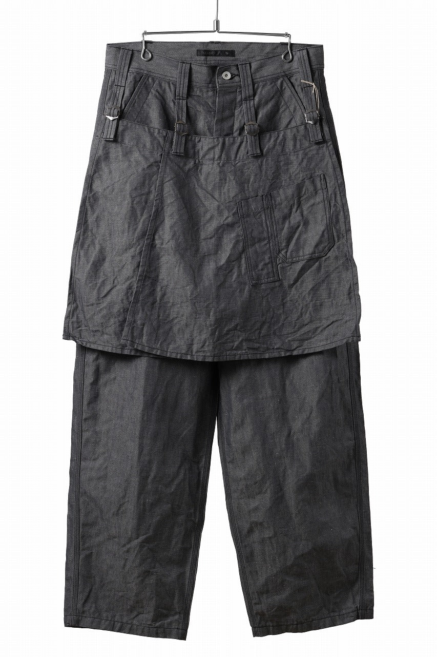 KLASICA "ROCKWELL" LOW CLOTCH APRON WORKER PANTS / 9.7oz COTTON x LINEN CHAMBRAY (GRAY DENIM)