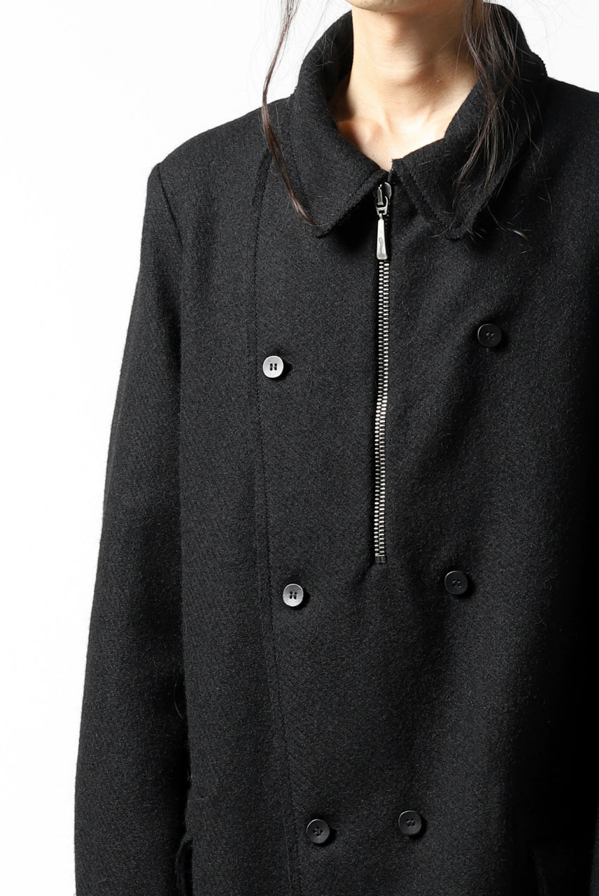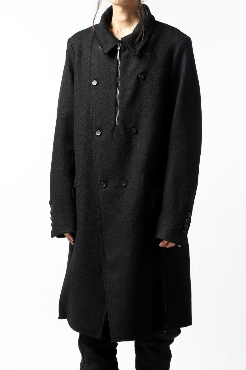 masnada HALF ZIP TRENCH COAT / TWEED LANA INTRECCIATA (BLACK)