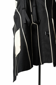 ・構築的技巧を用いたパターン、オーバーロックのステッチがより力強い立体造形に。