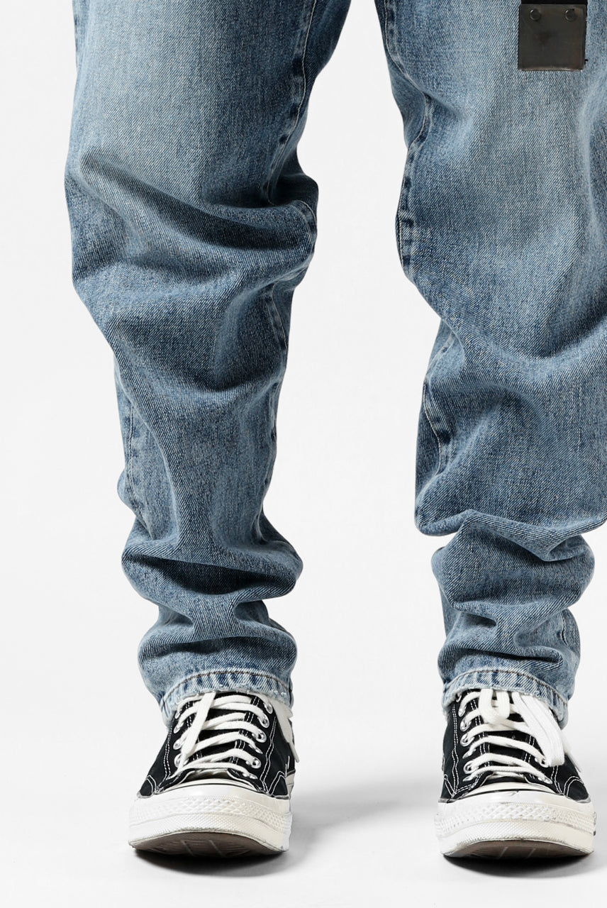 ・mastermind JAPANの象徴的なインディゴデニムのスリムテーパードパンツ