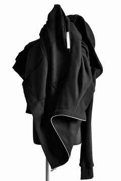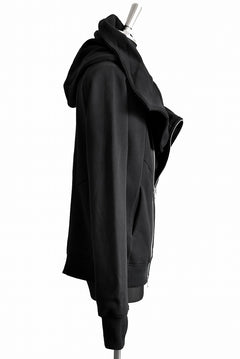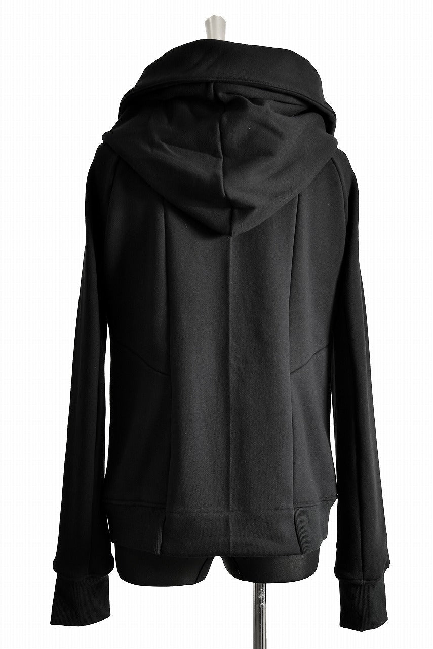 ラップ状に捲き付く様なハイネック、そしてビッグフーディーのデザイン。