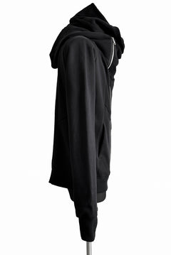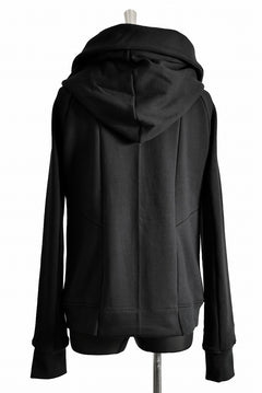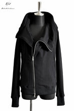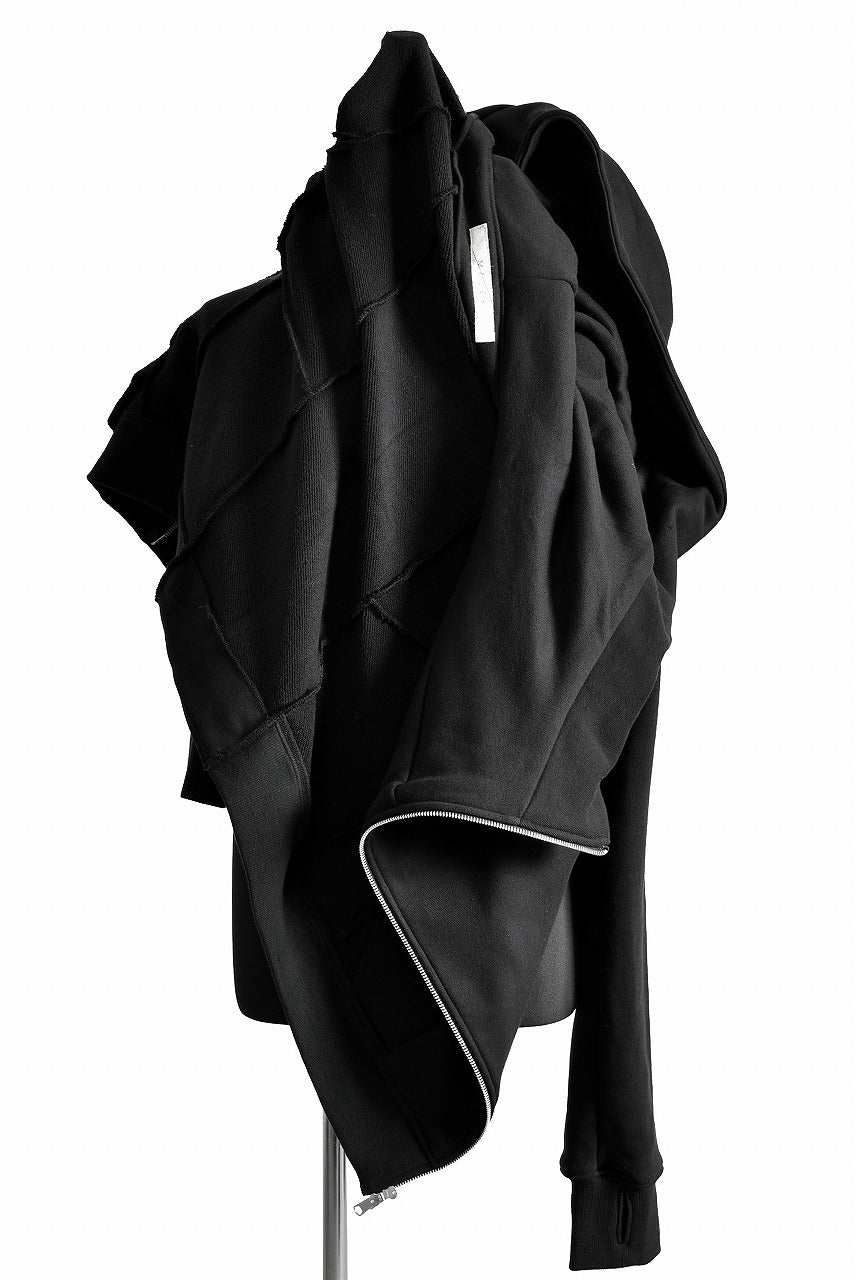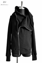 フロントジップの開閉に由り、前身頃のシルエットや雰囲気が全く変化する様なスタイル。
