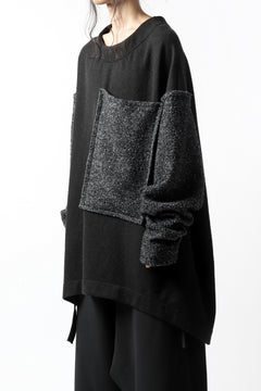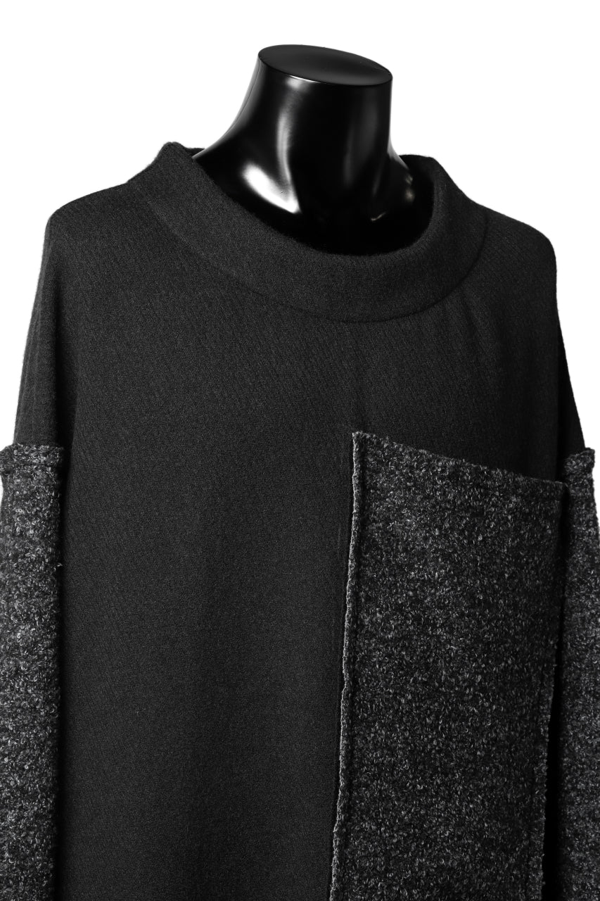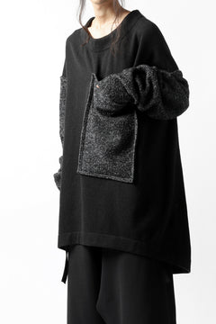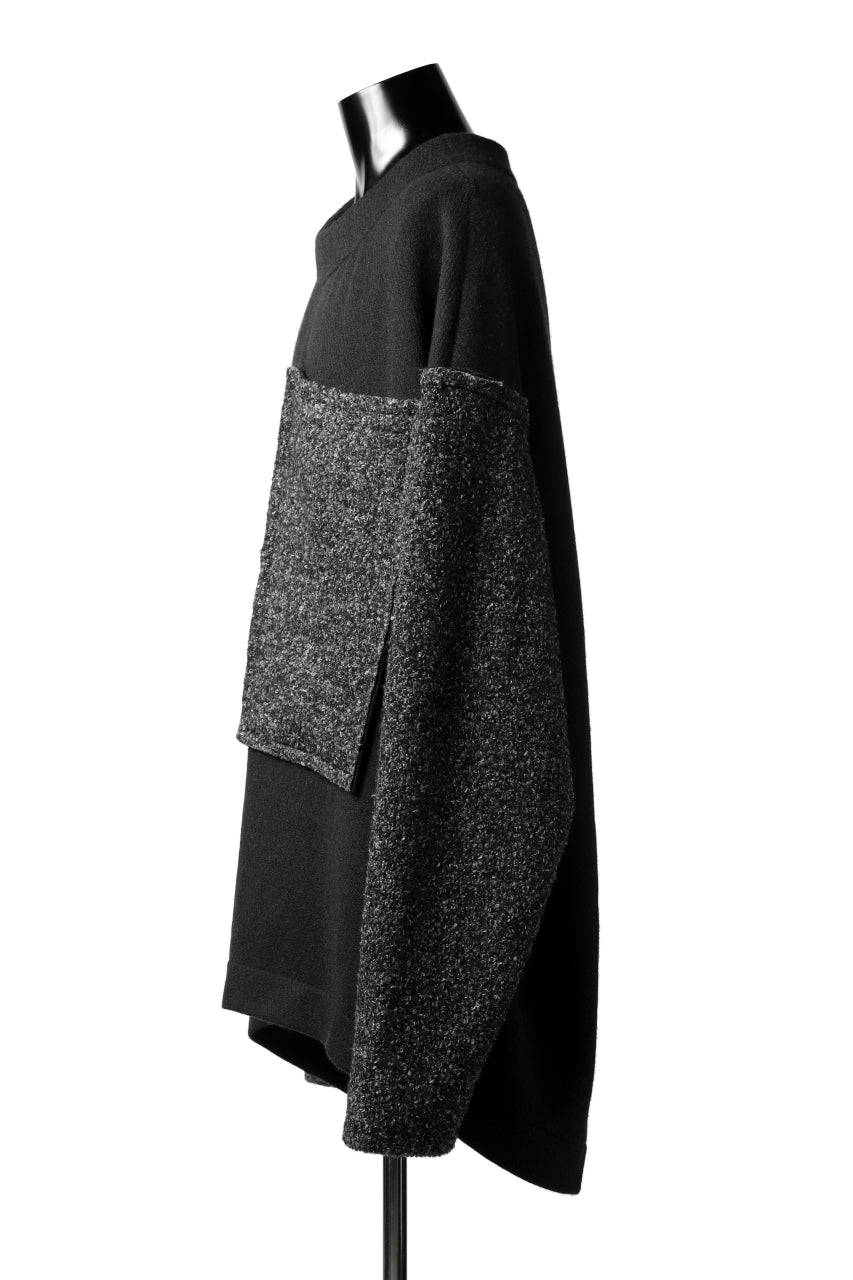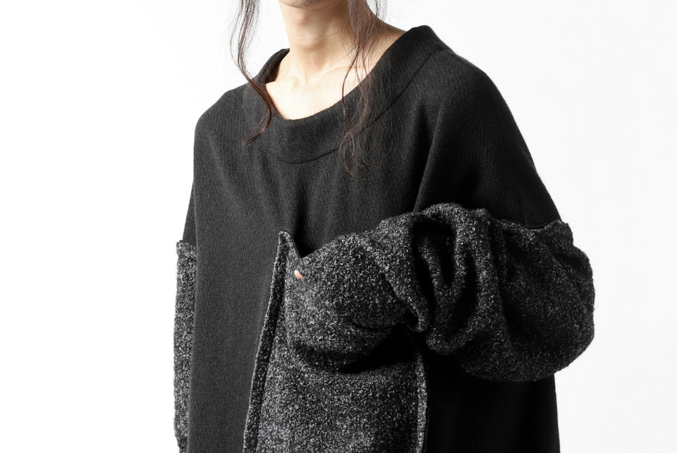 ・異素材のコンビネーションで構築したプルオーバーのニットセーター。