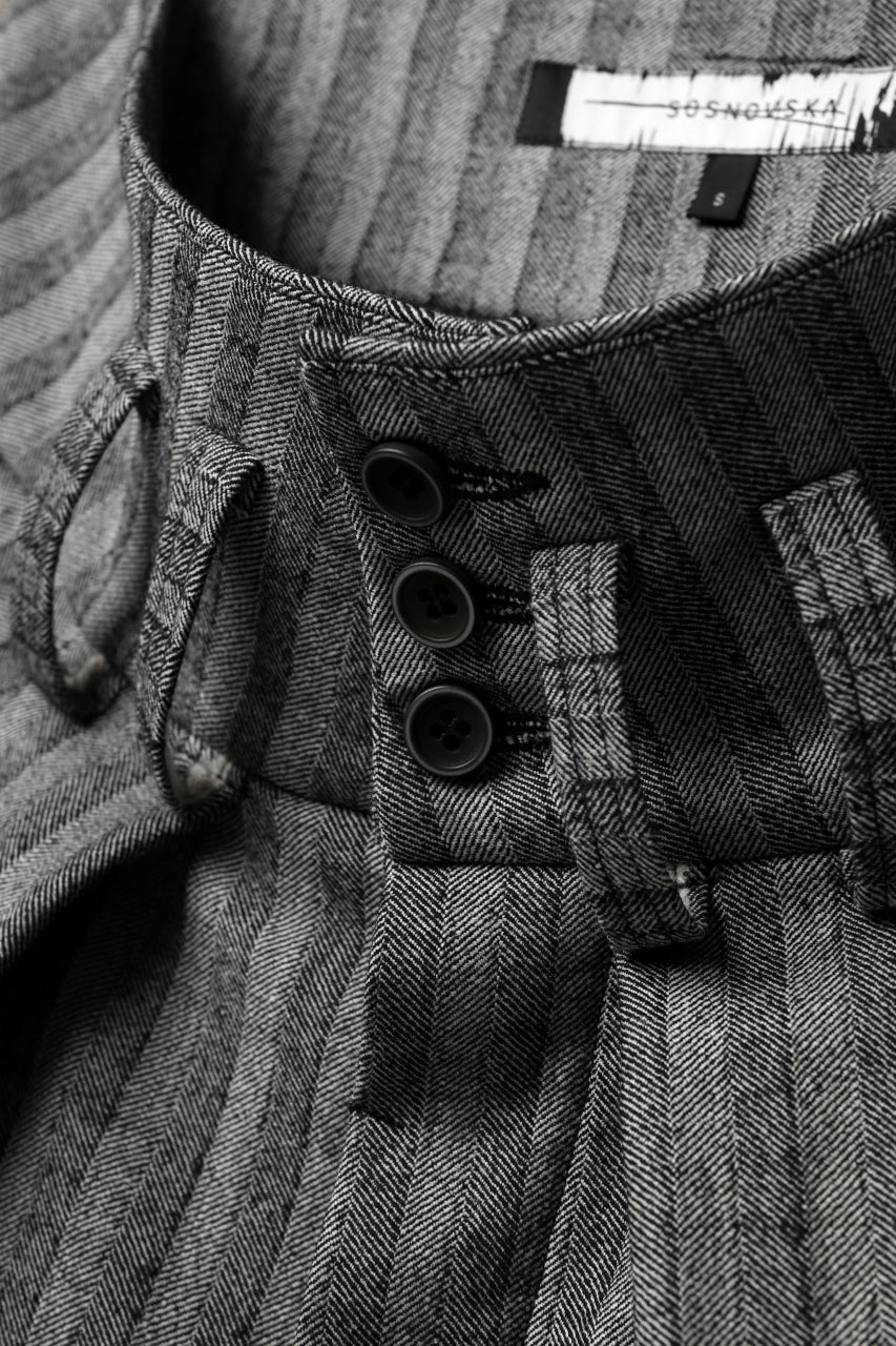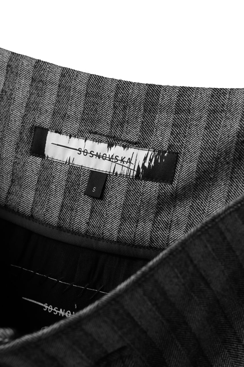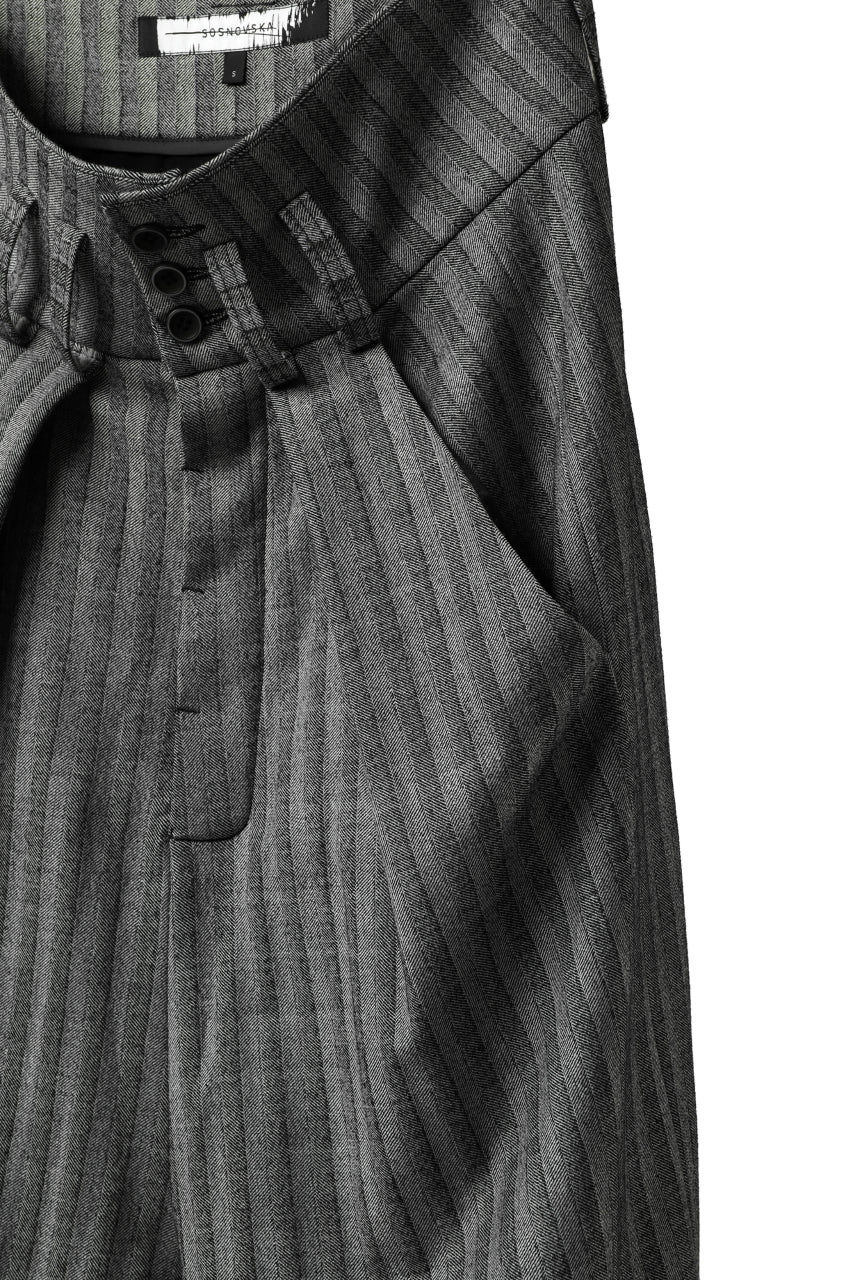 SOSNOVSKA exclusive CLOWN STYLE PANTS / HERRINGBONE WOOL STRETCH (GREY STRIPE)