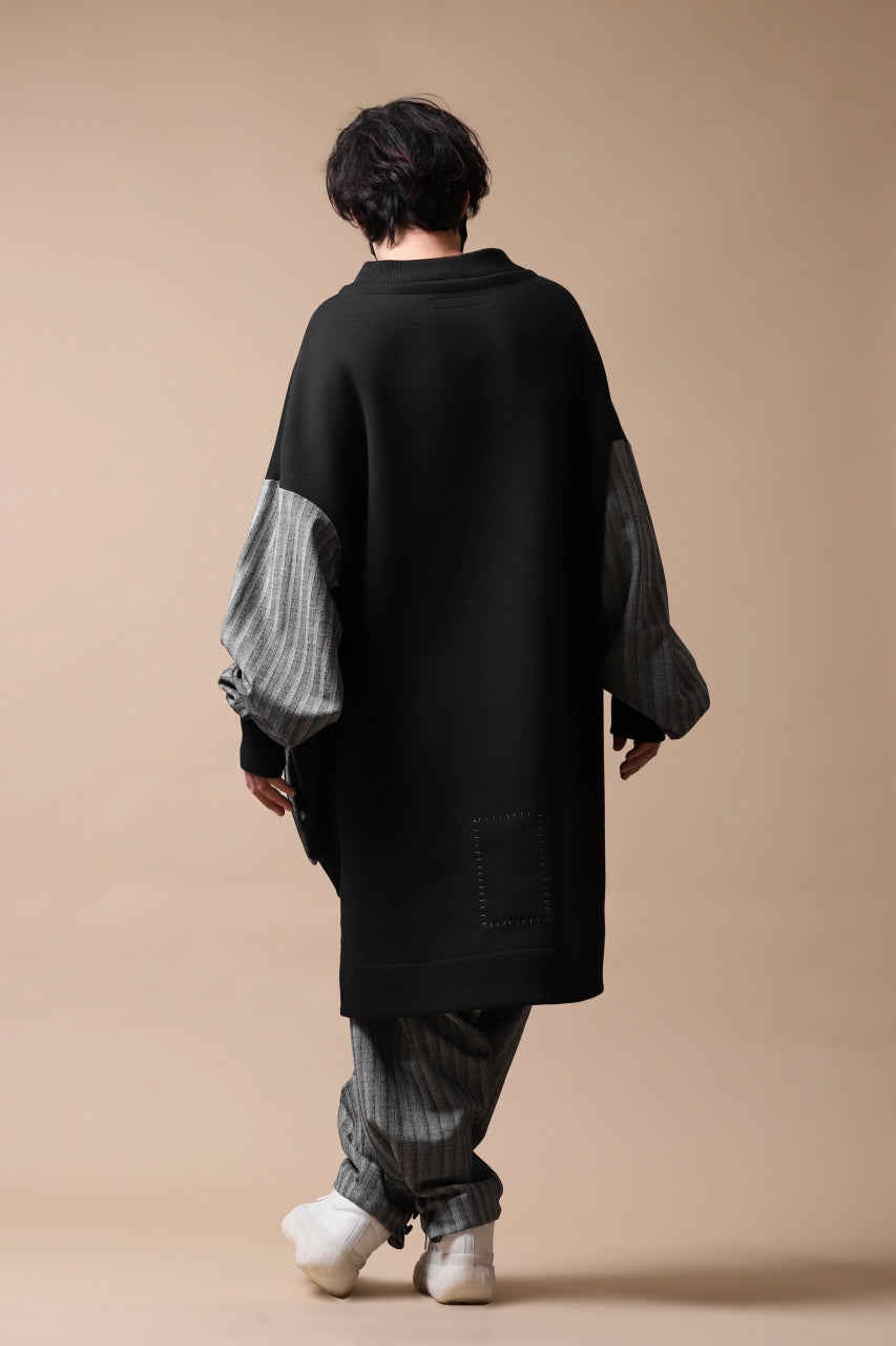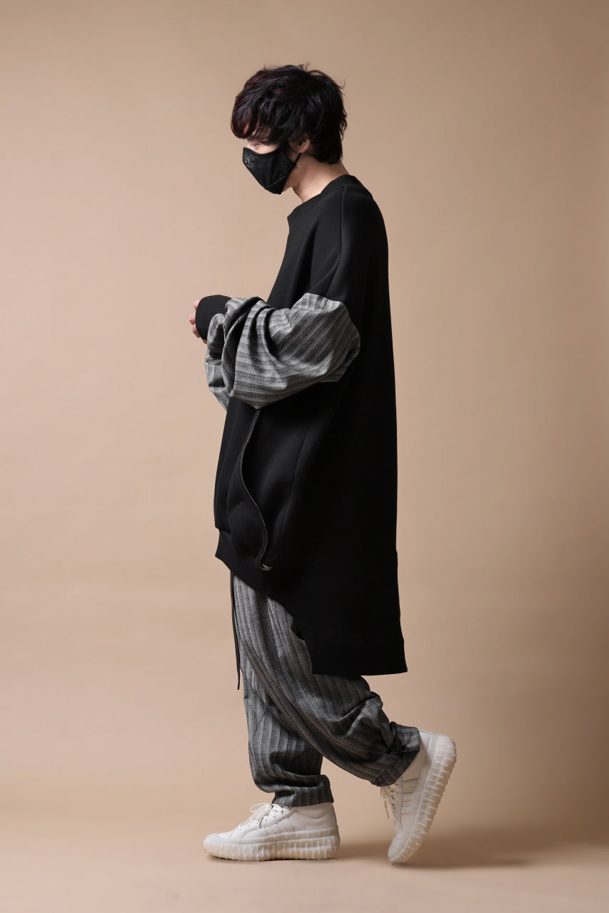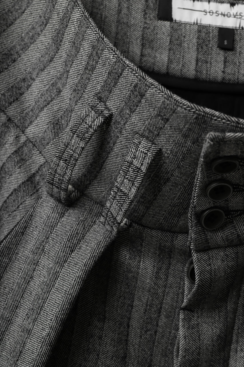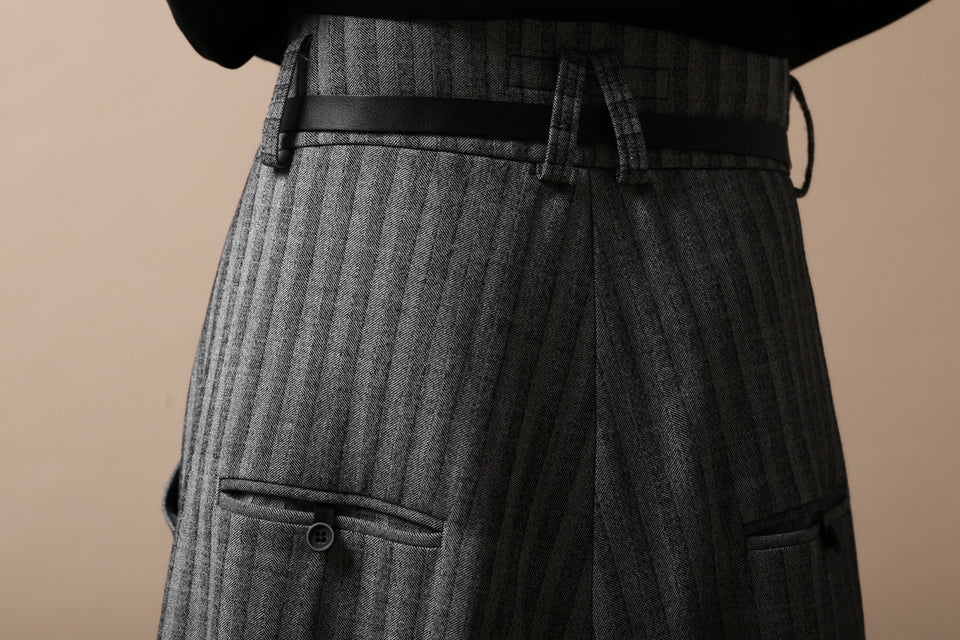 SOSNOVSKA exclusive CLOWN STYLE PANTS / HERRINGBONE WOOL STRETCH (GREY STRIPE)