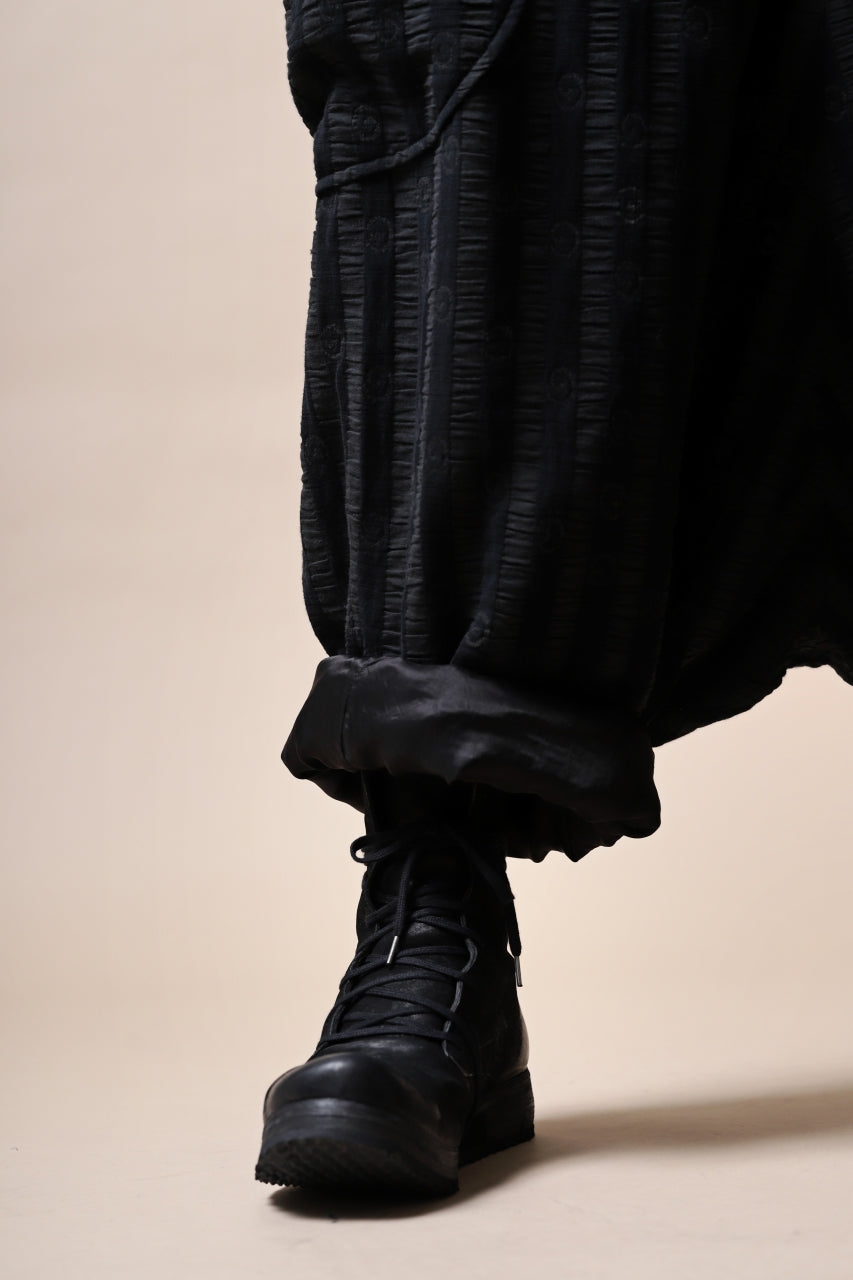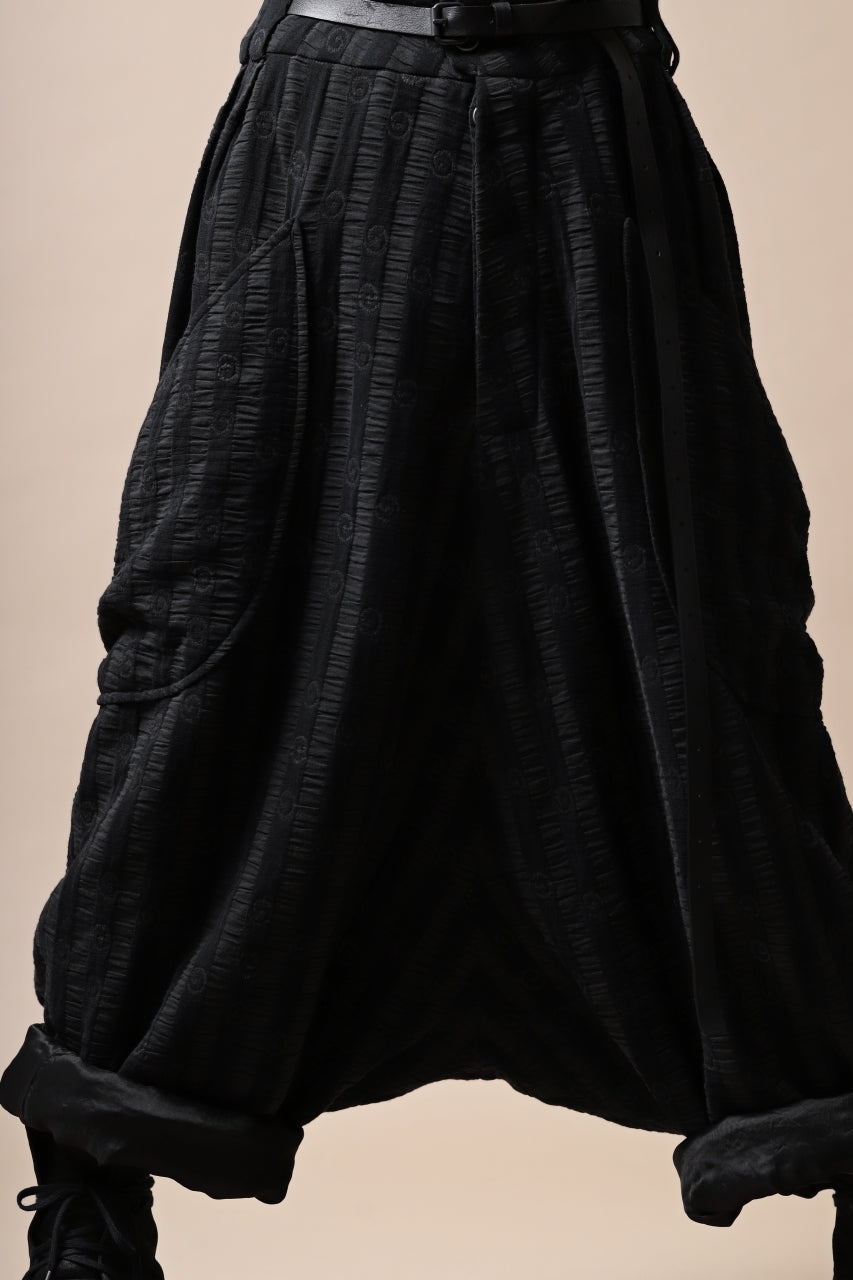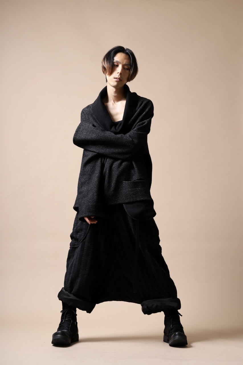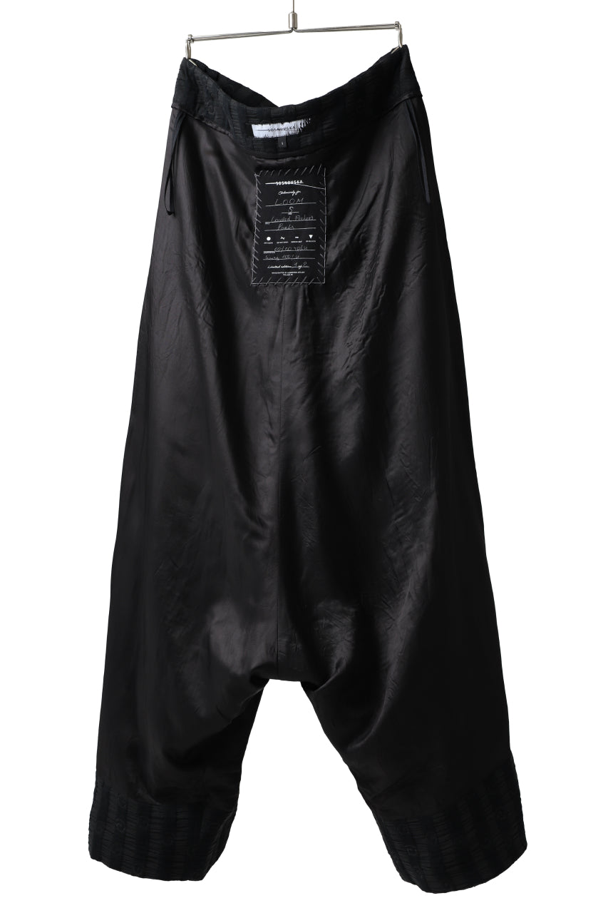 ・ほぼ裾丈に迫る程に極端に股上を深く落とし生まれる生地の豊かな弛み